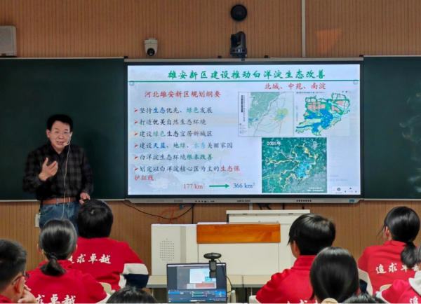 万师强教授以白洋淀的“前世今生”为主线,从历史变迁、红色记忆、生态功能等多个维度展开解读:结合雄安新区设立前后的生态蝶变,生动讲述了白洋淀成为生态治理标杆的历程;串联冀中抗日根据地的红色故事,深刻诠释了湿地生态与民族精神的共生;以“地球之肾”的形象比喻,深入浅出地解析了湿地在调节气候、净化水质、维持生物多样性等方面的核心生态价值。